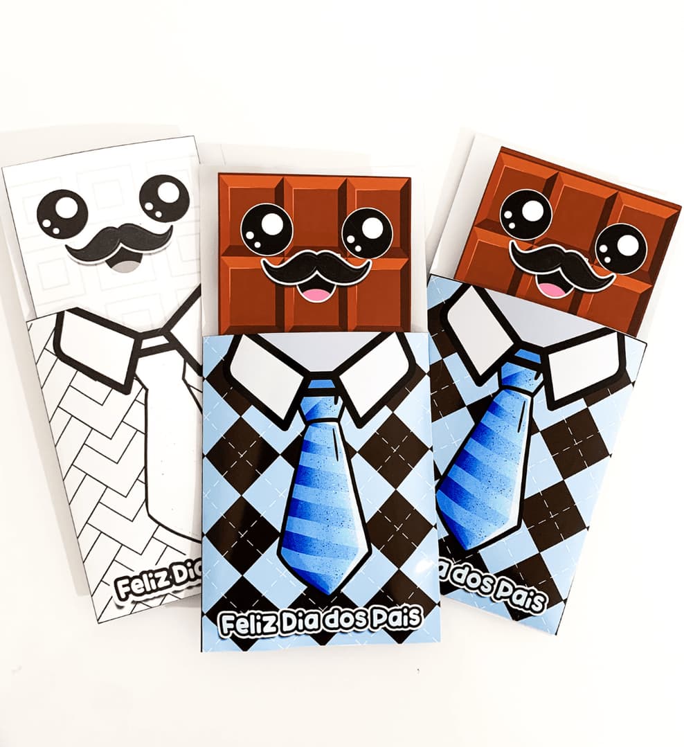 Cartão Dia dos Pais tema Chocolate. O arquivo vai em PDF pronto para impressão, nas opções colorido e para colorir. Cartão lindo e de fácil montagem, que vai com vídeo tutorial de com o passo a passo. Para impressão recomendamos papel de gramatura 120 ou superior.