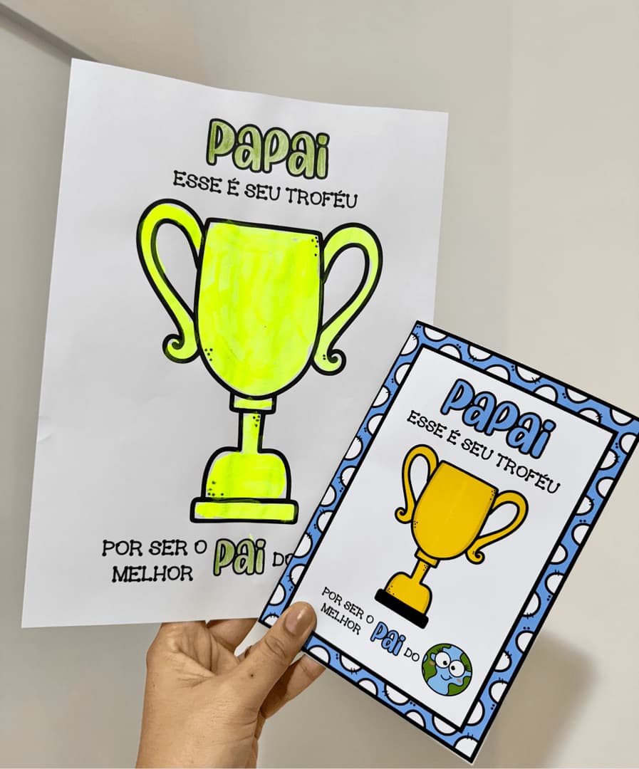 Arquivo – Kit Dia dos Pais Kit Dia dos Pais tema Troféu para trabalhar diversas habilidades com crianças da Educação Infantil. O material inclui uma proposta de atividades de artes e um cartão, que vai na opção colorida e para colorir. Para realizar a atividade as crianças podem explorar materiais e técnicas variadas de pintura, como tinta, papel colorido, papel crepom, lantejoulas ou outro material que você tiver disponível na sua sala. O material vai em PDF pronto para impressão. Não editável.