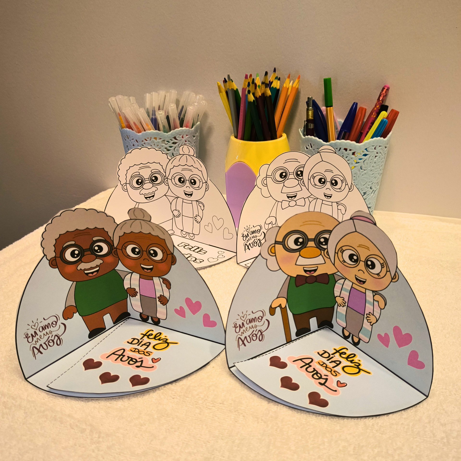 Lembrancinha interativa e fofa para o Dia dos Avós! 👵👴 São 4 modelos diferentes, sendo 2 coloridos e 2 para colorir! 💖✏️ Uma forma criativa e afetiva de homenagear os vovôs e vovós! 💌 ✅ São 4 modelos de lembrancinha interativa em formato dobrável: 🖍️ 2 versões para colorir, onde os pequenos soltam a imaginação e criatividade; 🎨 2 versões coloridas, prontinhas para imprimir, dobrar e encantar! 💡 As crianças podem montar a lembrança com muito carinho e presentear os avós com uma atividade que une afeto e expressão artística! Ótima opção para Educação Infantil e Anos Iniciais, com baixo custo e alto valor emocional! 💖 🎁 Ideal para: Trabalhos escolares 🏫 Homenagens em sala de aula 👏 Presentinhos afetivos em datas comemorativas 💌 📎 Fácil de montar, divertido de fazer e lindo de entregar!