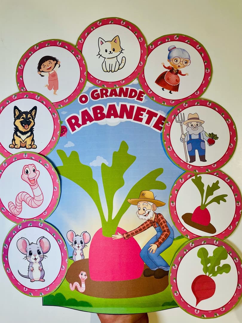"Um, dois, três... puxem com força dessa vez!" 💪👧👦 Com essa Luva de História interativa, as crianças se divertem e aprendem com a clássica história O Grande Rabanete, onde a união faz a força! 💛🌱 🌟 O que esse recurso proporciona? ✅ Ensina sobre cooperação e trabalho em equipe 👏🤝 ✅ Estimula a oralidade e a imaginação 🎭🗣️ ✅ Trabalha sequência lógica e narrativa 📖🔄 ✅ Ideal para educação infantil e alfabetização! Acompanha fichas ilustradas para que os pequenos possam organizar a história e participar ativamente dessa aventura cheia de aprendizado e diversão! Quem aí já quer puxar esse rabanete gigante com a turma? 🙋♀️🙋♂️✨