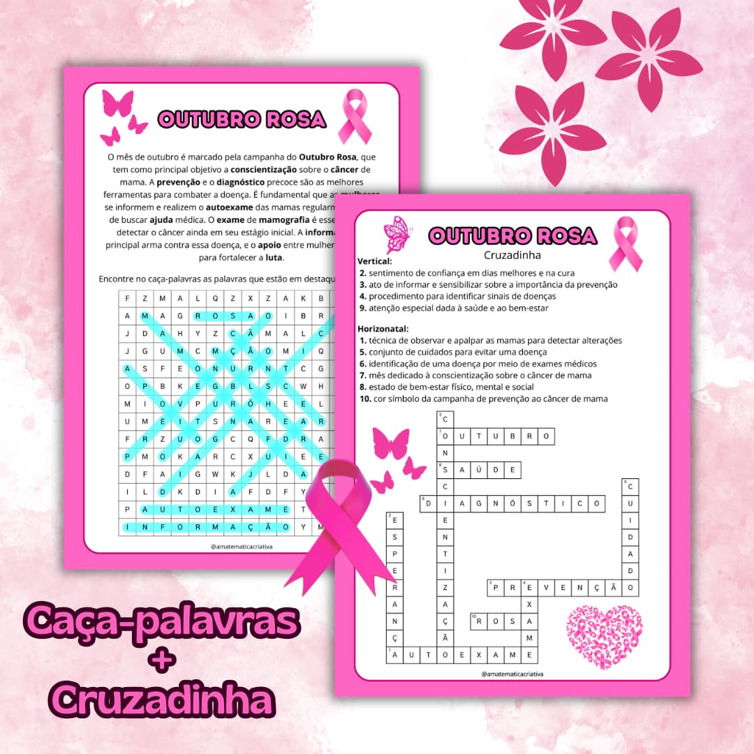 O Outubro Rosa é um momento especial para reforçar a importância da prevenção e do cuidado com a saúde da mulher. Trabalhar essa data em escolas, empresas ou eventos é fundamental para levar conscientização e acolhimento. ✨ O que você recebe: ✔️ Painel reflexivo e inspirador ✔️ 24 cards com mensagens sobre prevenção e autoestima ✔️ Arquivo em PDF pronto para impressão 💡 Como usar: Monte um painel interativo com os cards, incentive rodas de conversa, decore murais ou promova atividades que envolvam a reflexão e a valorização da vida. Uma forma prática, criativa e significativa de espalhar amor, apoio e informação no Outubro Rosa! 🌸