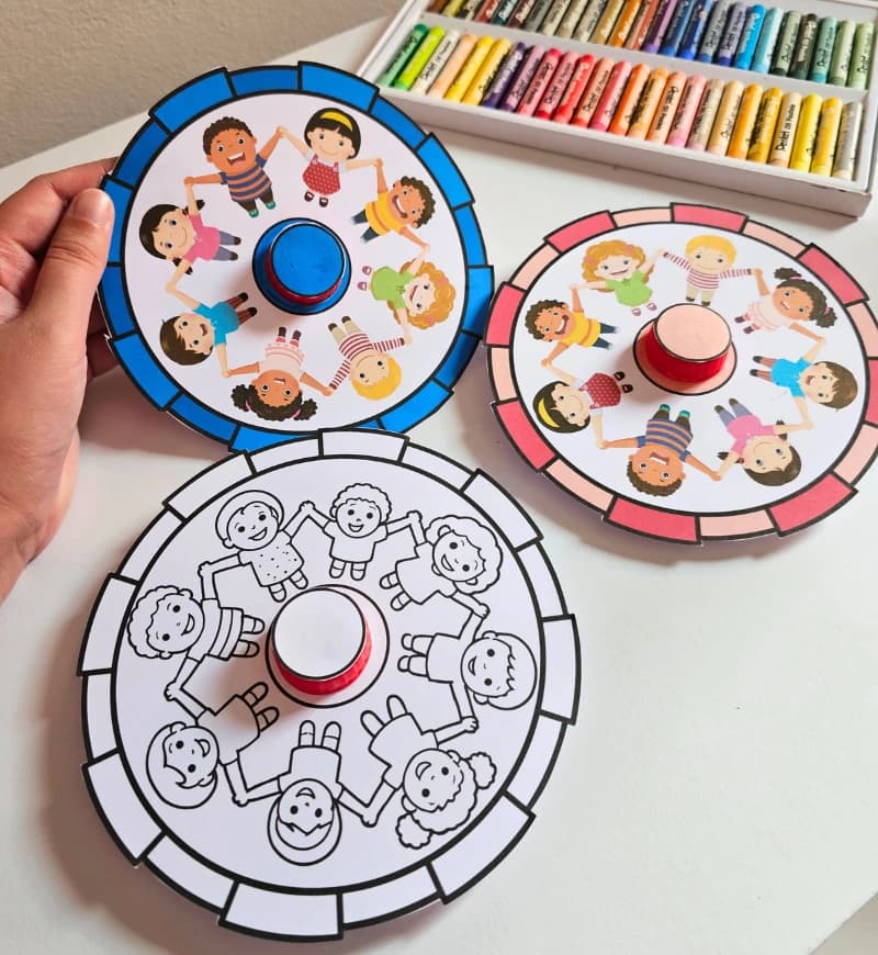 Pião para o Dia das Crianças. Proposta de brinquedo feito utilizando material reciclado para o Dia das Crianças, uma opção divertida de lembrancinha para comemorar e deixar esse dia ainda mais especial. São 3 modelos: azul, rosa e para colorir. Recomenda-se imprimir em papel de gramatura 180. O arquivo vai em PDF pronto para impressão. Não editável.