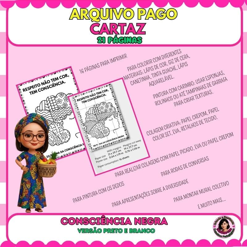 Valorize a diversidade e enriqueça o aprendizado em sala de aula com esta caixinha de fichas educativas. ✨ O que você encontra no arquivo: ✔️ Fichas ilustradas com personalidades negras que marcaram a história, a cultura e a arte do Brasil ✔️ Conteúdo pronto para imprimir e utilizar em atividades pedagógicas ✔️ Material atrativo que desperta curiosidade e promove debates significativos 💡 Por que usar em sala de aula? Este recurso é essencial para trabalhar representatividade, inclusão e valorização da cultura afro-brasileira. Pode ser usado em rodas de conversa, exposições, jogos de memória, murais ou como apoio em projetos temáticos. 📚 Uma ferramenta prática e transformadora para inspirar os alunos, dar visibilidade a grandes nomes da nossa história e fortalecer a consciência social e cultural.