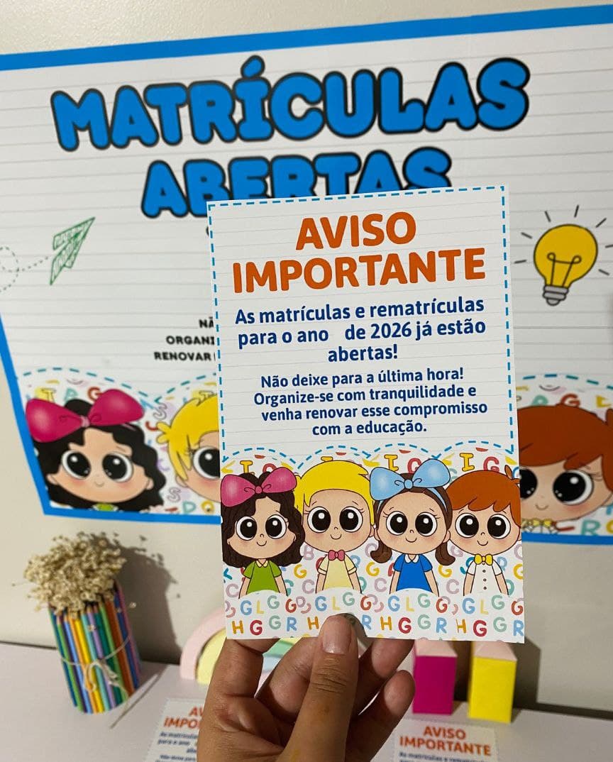 Deixe sua escola acolhedora e organizada com o Painel de Matrículas 2026! Inclui painel ampliado e panfleto informativo prontos para imprimir, ideais para divulgar matrículas e rematrículas de forma prática e atrativa.