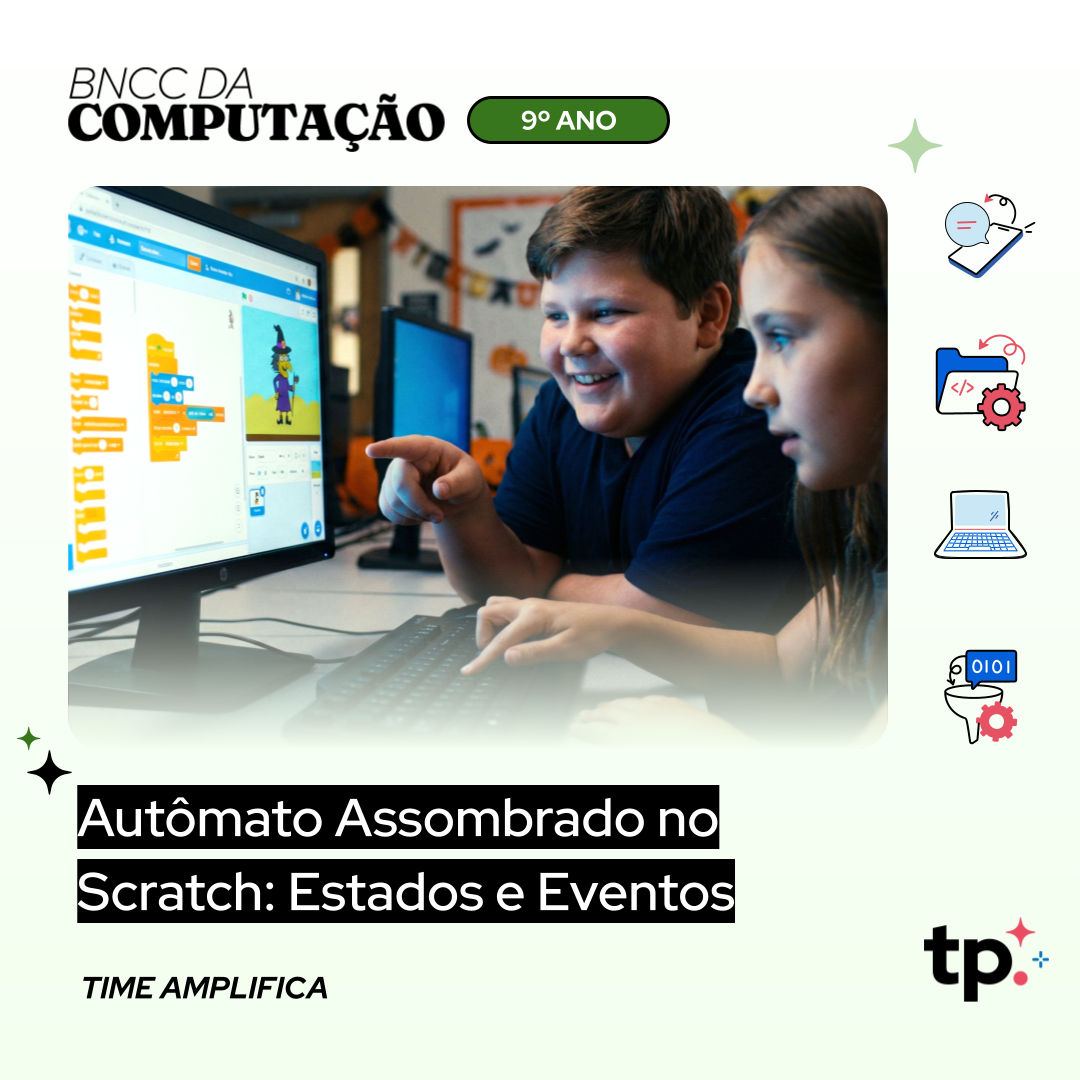 Programe o terror com Autômato Assombrado no Scratch. Aula plugada sobre autômatos e eventos para o Halloween no 9º ano. Baixe agora!