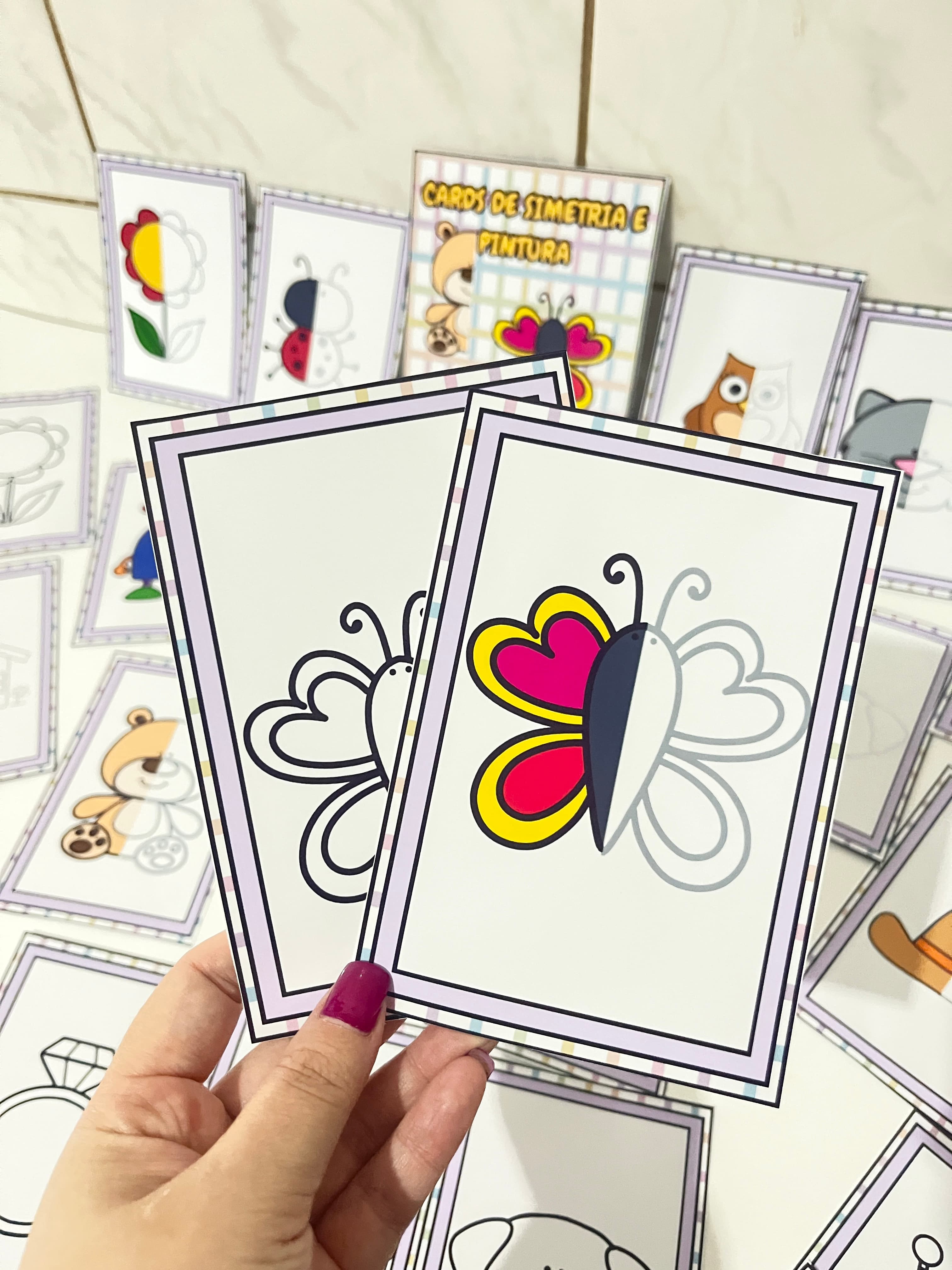 Estimule a criatividade e o raciocínio lógico das crianças com os Cards de Simetria e Pintura.