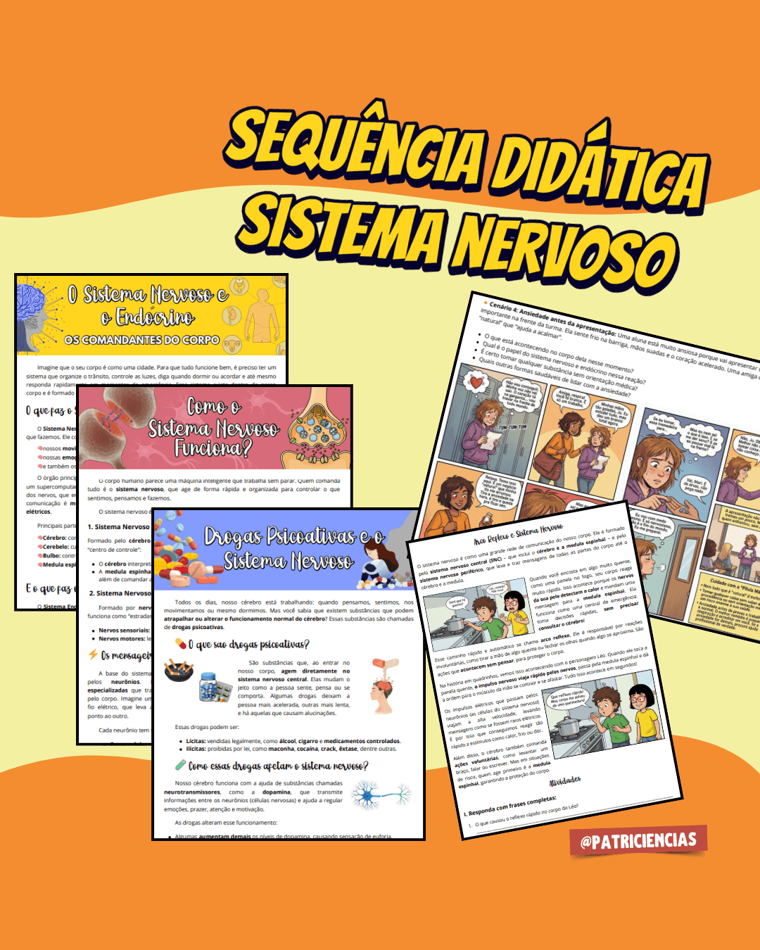 Sequência didática completa sobre Sistema Nervoso e Endócrino e os efeitos das drogas no corpo. Inclui aulas prontas, atividades com gabarito, HQs, cenários-problema, slides e propostas alinhadas à BNCC. Ideal para levar ciência aplicada às suas aulas.