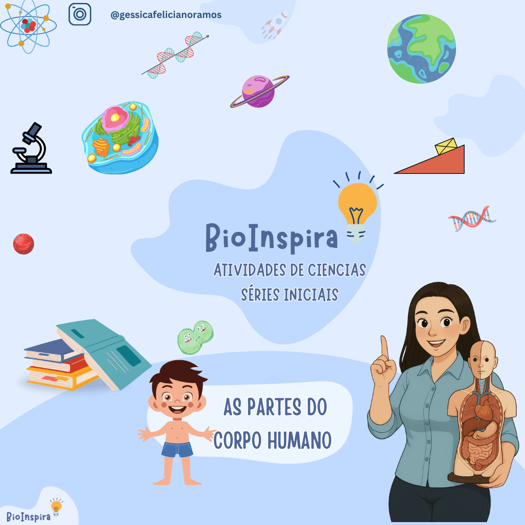 Garanta aulas dinâmicas e alinhadas à BNCC! Este pacote de atividades integra Ciências (Corpo Humano) e Língua Portuguesa (Alfabetização), sendo perfeito para o 1º Ano.
