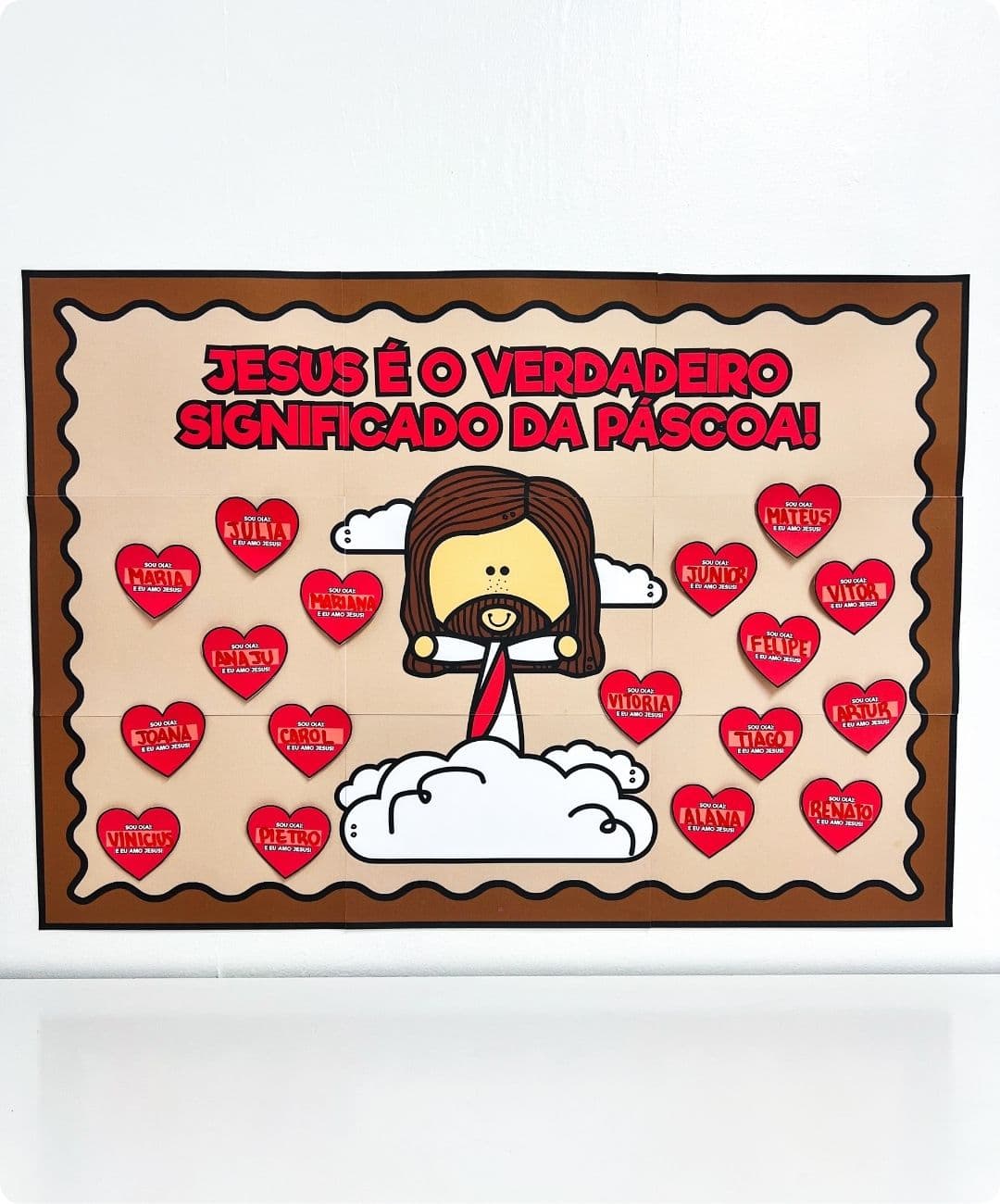 Transforme o ensino do verdadeiro significado da Páscoa em um momento inesquecível! Se você busca um recurso pedagógico cristão que une arte, colaboração e fé, este painel é a escolha perfeita para sua turma de Educação Infantil ou Ensino Fundamental.