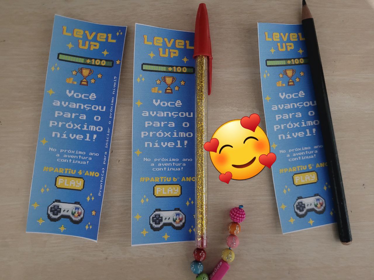Lembrancinha Afetiva para Lápis E Marcador de Páginas! Celebre o avanço de série (3º, 4º e 5º ano) com um mimo gamificado e versátil.