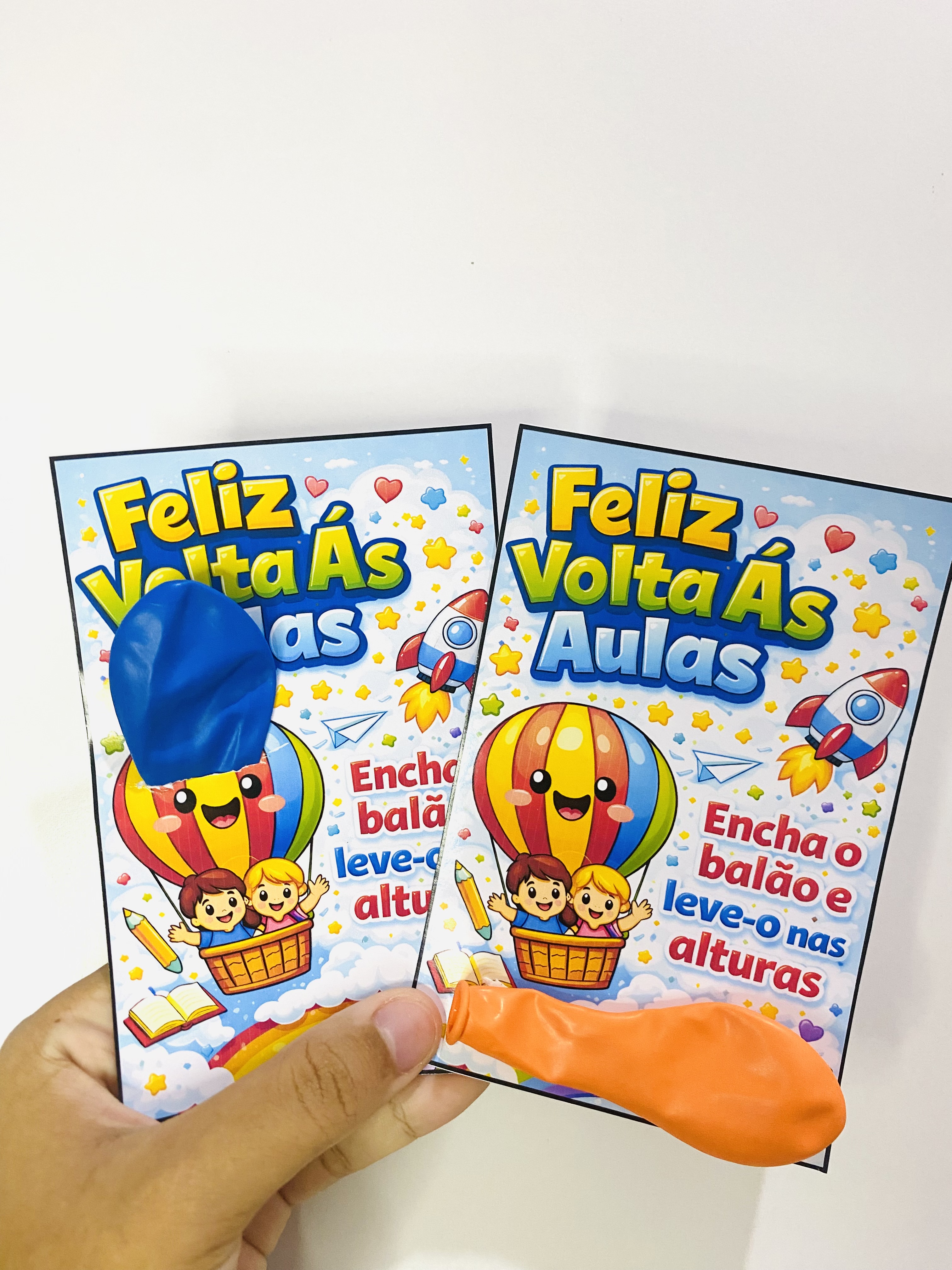 Um cartão colorido e cheio de alegria para tornar a volta às aulas ainda mais especial. E um balão para encher e levar a imaginação das crianças às alturas, tornando esse momento divertido e inesquecível.