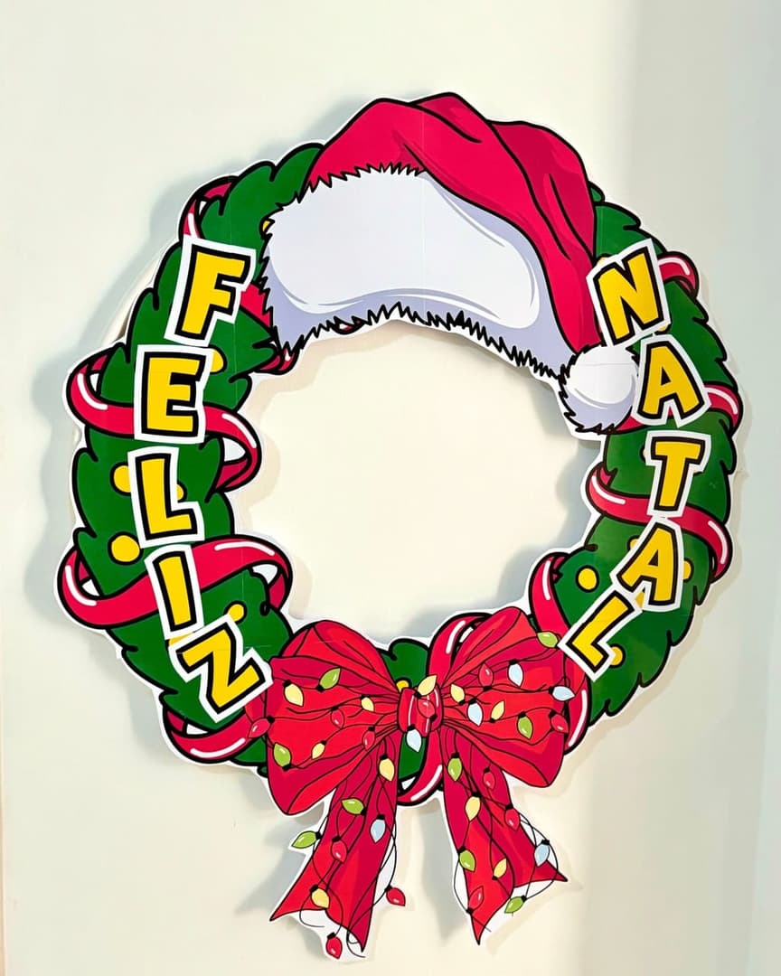 🎄 Decoração para Bambolê - Tema Feliz Natal 🌟 Proposta encantadora para fotos de final de ano, ideal para turmas de Educação Infantil e Ensino Fundamental. 🖨️ Detalhes: ✔️ Material ampliado e pronto para impressão. ✔️ Recomenda-se papel com gramatura 180 ou 230 e cola de silicone líquida para montagem. 📂 Formato: PDF pronto para impressão.