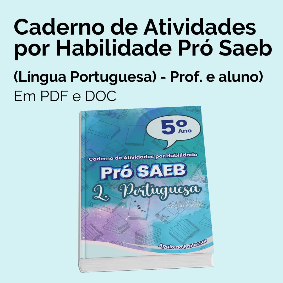 Pacote completo com cadernos de atividades por habilidades Pró SAEB de Língua Portuguesa com 130 questões fechadas, organizadas em 05 atividades para cada habilidade da Matriz do SAEB.