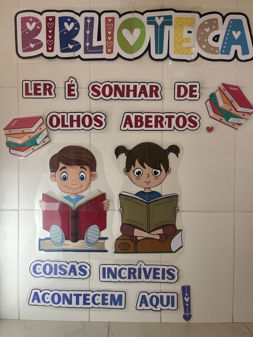 📚✨ Painel Biblioteca – Deixe sua biblioteca ainda mais encantadora! ✨📚 Transforme o cantinho da leitura com esse painel super especial e cheio de charme! Ideal para valorizar o espaço da biblioteca e despertar ainda mais o amor pelos livros. 💛📖 🎨 O que você vai receber: ✅ Dois bonecos fofos lendo livros ✅ Livrinhos decorativos para compor o cenário ✅ Três frases inspiradoras sobre leitura ✅ Arquivo em PDF pronto para impressão ✅ Dimensão aproximada: 1,40m de altura x 1,20m de largura 🌟 Benefícios: • Cria um ambiente acolhedor e convidativo para a leitura • Estimula o interesse pelos livros e histórias • Decoração criativa e pedagógica para sua escola ou sala de aula