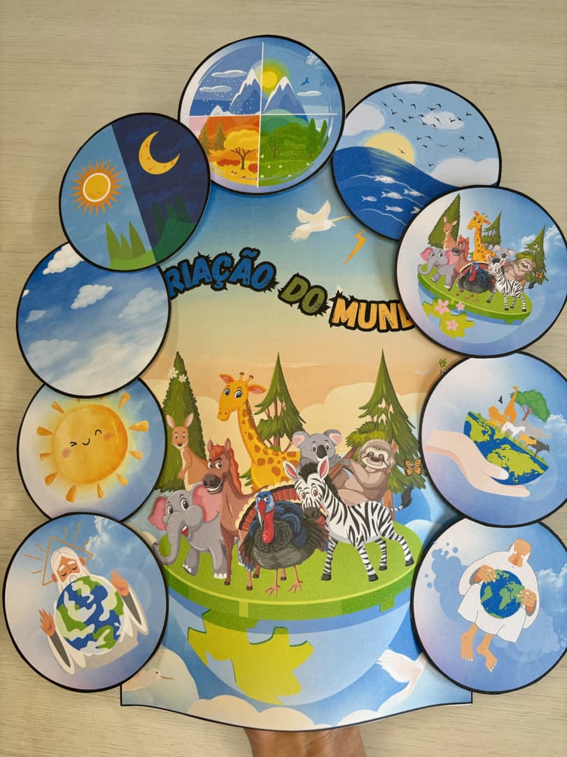 Uma história que revela o amor e a perfeição de Deus em cada detalhe da criação. 💫 Com a Luva de História da Criação do Mundo, as crianças podem aprender sobre os 7 dias da criação de forma visual e interativa: desde a luz e as trevas até o descanso no sétimo dia. 🌞🌱🌊