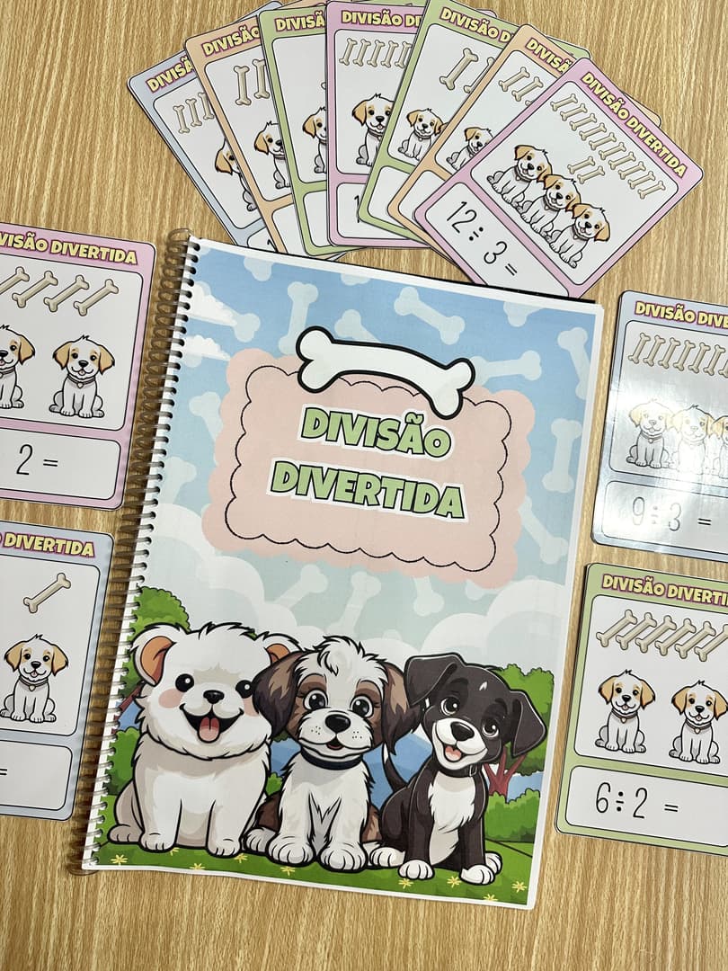 O arquivo Divisão Divertida inclui um recurso e uma apostila de atividades para trabalhar o tema com crianças de 4 a 7 anos. As atividades vão nas opções coloridas e para colorir, com diferentes propostas para que as crianças recortem os elementos e dividam igualmente nos espaços indicados.