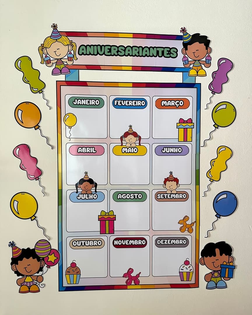 Painel Aniversariantes – Organização e Decoração para sua Sala de Aula! 🎂🎉 O Painel Aniversariantes é um recurso lindo e prático para organizar as datas especiais dos alunos de forma visual e decorativa. 🖨️ Detalhes do arquivo: Arquivo em PDF, pronto para impressão. Medidas do painel montado: 95cm de altura x 85cm de largura. Pode ser utilizado com caneta para quadro branco, bastando aplicar papel contact sobre o cartaz para escrever e apagar com facilidade. 📚 Benefícios: Ótima opção para turmas de educação infantil e séries iniciais do Ensino Fundamental. Ajuda a organizar os aniversários da turma de forma prática e visual. Decoração atrativa que deixa o ambiente escolar mais acolhedor e divertido.