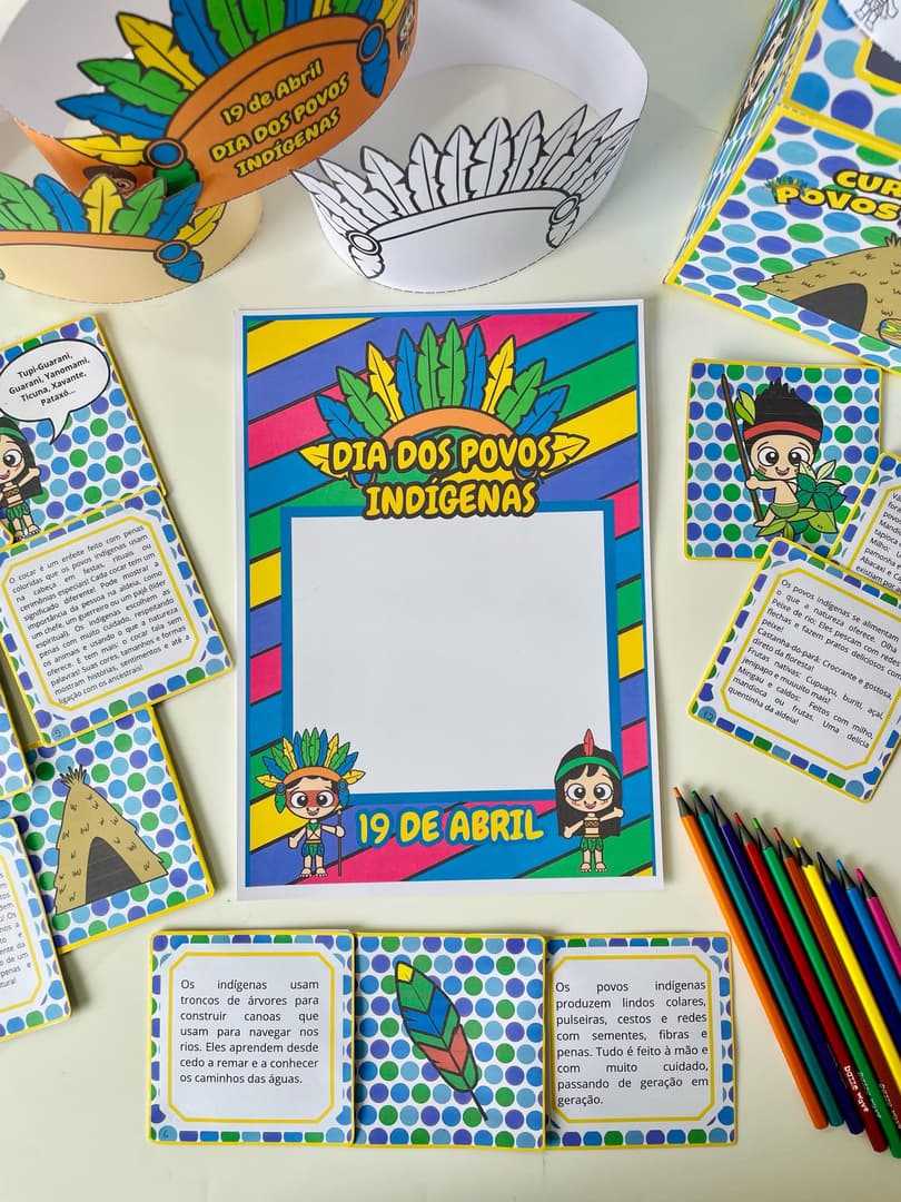 Celebre o 19 de Abril com profundidade e ludicidade! Este kit completo traz uma História na Caixa com curiosidades reais, um Painel Gigante para atividade coletiva e Viseiras personalizadas. Tudo planejado para ensinar o respeito à diversidade cultural e valorizar as tradições dos povos originários.