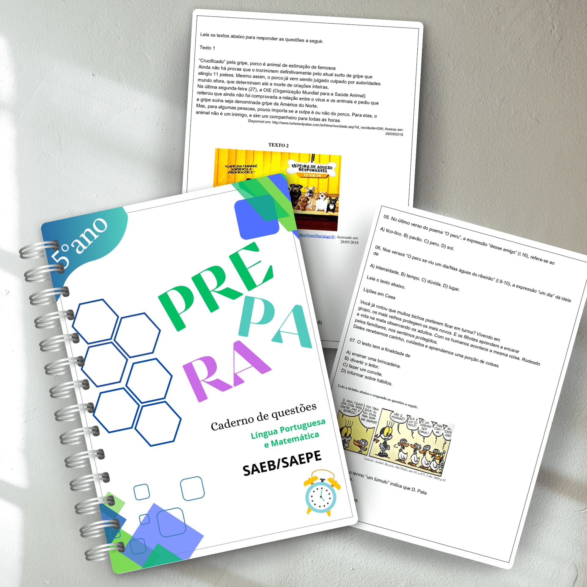 Apostila com atividades de Língua Portuguesa 📚 e Matemática ➕✖️ voltadas para a preparação dos alunos do 5º ano para as avaliações SAEB e SAEPE! 💡✅ 📘 Esta apostila "Prepara 5º Ano SAEB" é um excelente recurso para reforçar os conteúdos essenciais das disciplinas de Língua Portuguesa e Matemática, com foco nas habilidades cobradas nas avaliações externas como o SAEB e SAEPE! São atividades contextualizadas que desenvolvem a leitura, interpretação, resolução de problemas, raciocínio lógico e domínio da linguagem escrita! Composta por 32 questões objetivas, o material contempla: ✅ Textos diversos com questões de compreensão e interpretação ✅ Problemas matemáticos envolvendo as quatro operações ✅ Situações do cotidiano e análise crítica ✅ Estímulo à autonomia e ao pensamento reflexivo 🧠 Ótimo para ser usado em sala de aula, como revisão, preparação para provas ou como reforço escolar! 📄 Quantidade de páginas: 16 páginas 🎯 Ideal para estudantes do 5º ano do Ensino Fundamental ✨ Garanta esse material e ajude seus alunos a se sentirem mais preparados e confiantes nas avaliações! 💪📈