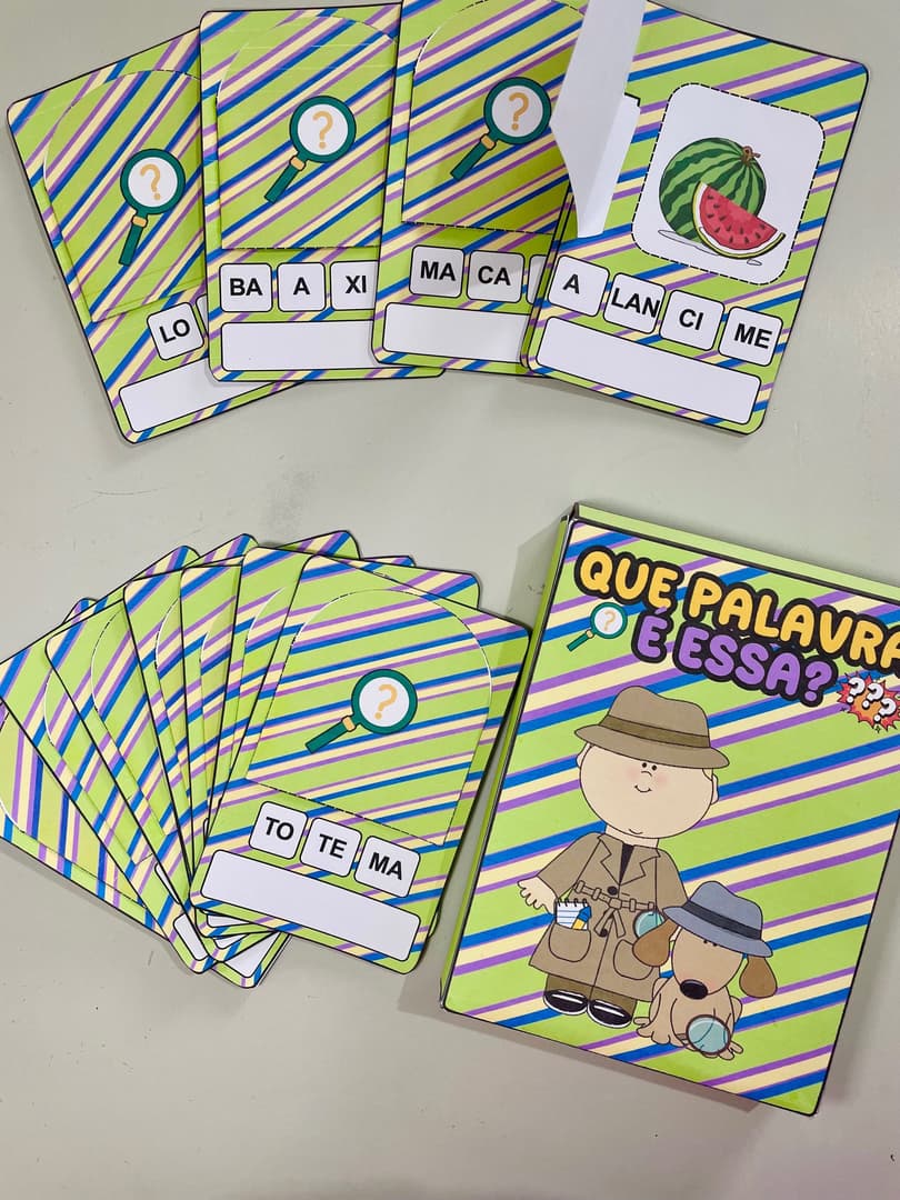 🔍✨ Que palavra é essa? – Um desafio divertido para pequenos detetives da alfabetização! 🕵️♀️✏️ Neste recurso super lúdico, a criança recebe uma ficha com sílabas embaralhadas e precisa descobrir qual é a palavra correta. Depois de montar mentalmente e escrever no espaço reservado, ela abre a portinha e revela a imagem escondida, conferindo se acertou! 😍 Perfeito para trabalhar: ✅ Leitura e escrita; ✅ Consciência silábica; ✅ Formação e estrutura de palavras; ✅ Raciocínio, atenção e memória visual. 📦 Acompanha uma caixinha organizadora fofa, fichas coloridas e espaço para escrita com possibilidade de plastificação para reuso com canetinha. 💡 Uma maneira leve e envolvente de reforçar a alfabetização com brincadeira e descoberta!