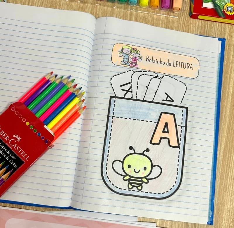 O arquivo Bolsinho da leitura inclui 26 páginas de atividades interativas para trabalhar as letras do alfabeto. Essa proposta oferece a possibilidade de trabalhar a leitura de palavras e as letras do alfabeto ao mesmo tempo Nessa proposta a criança poderá recortar e colar o bolsinho em seu caderno e realizar a leitura das palavras, com apoio caso necessário. As imagens são para colorir, e cada bolsinho acompanha 5 palavras iniciadas com a letra representada, sendo a maioria de sílabas simples. Arquivo em PDF pronto para impressão. Não editável.
