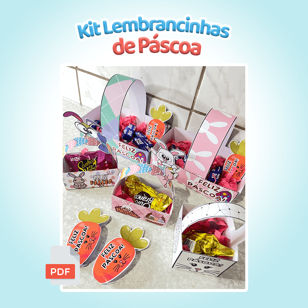 Kit com lembrancinhas de Páscoa para imprimir, contendo 5 modelos coloridos e 1 modelo para colorir. Ideal para presentear os alunos e tornar a comemoração da Páscoa na escola ainda mais especial.