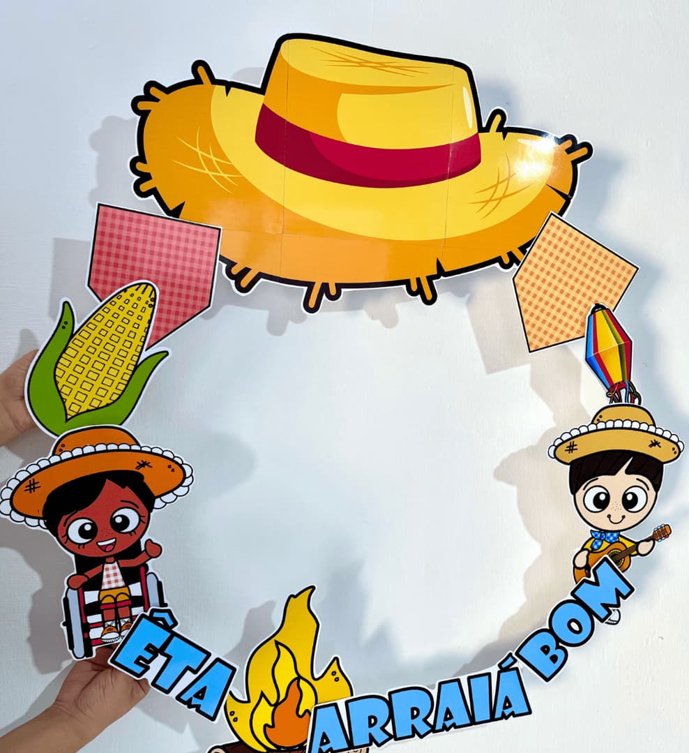 🎉 Decoração para Bambolê - Tema Festa Junina 🎈 Este arquivo em PDF, já ampliado e pronto para impressão, traz diversas opções de elementos para montar uma decoração personalizada de bambolê, ideal para tirar fotos das crianças e embelezar a festa! 📸🎊 📄 Recomendações: Imprimir em papel de gramatura 180 para maior durabilidade. Utilizar fita crepe comum para colar os elementos no bambolê. 🎨 Uma forma criativa e divertida de enriquecer a decoração da Festa Junina! 🌽🎶