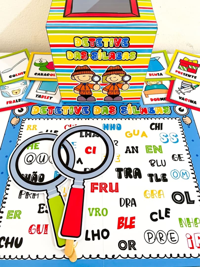 Recurso para trabalhar Sílabas Complexas com crianças em fase de alfabetização. O arquivo vai em PDF, pronto para impressão. 📄✨ Ao adquirir o arquivo, você também recebe o vídeo tutorial da montagem da caixa. 🎥📦 O material inclui: Caixa para ser utilizada no momento da atividade 🎁 38 fichas com palavras 🃏 Prancha com as sílabas complexas que aparecem nas fichas 📜 Lupa 🔍