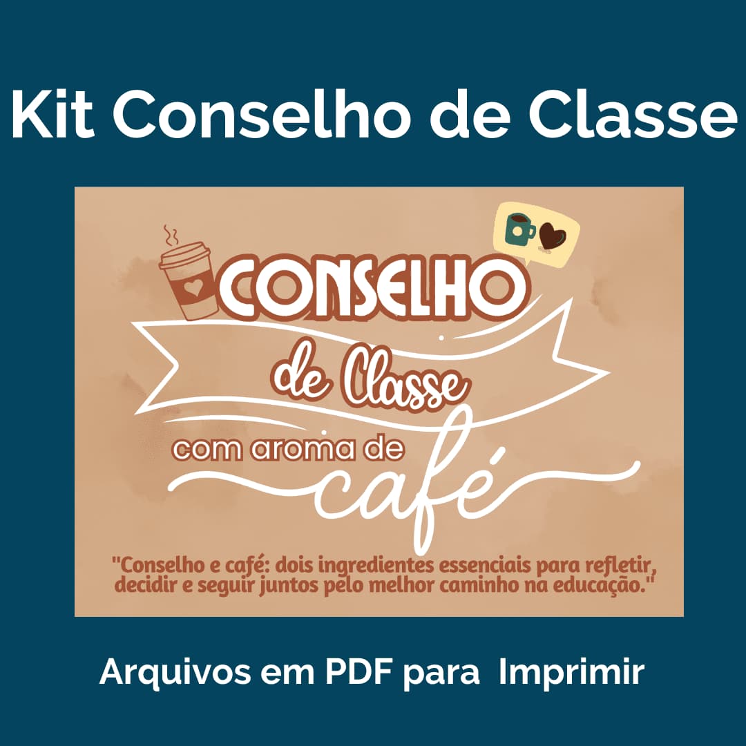 Kit para impressão, para receber os professores no Conselho de Classe. O Kit contém: Bloco para anotações, Cartão para bombom, cartão para cappuccino, cartaz, painel ampliado, marca páginas, placa de bem-vindos para mesa.