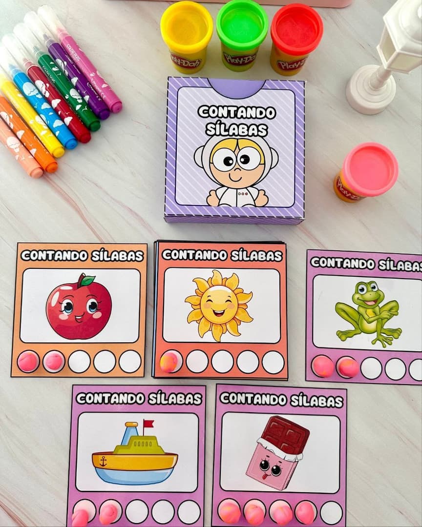 Contando Sílabas de Forma Divertida! 🗣✨ Atividade interativa perfeita para estimular a consciência silábica desde a Educação Infantil! 💡 Use com massinha, caneta para quadro branco ou materiais manipulativos. Ideal para desenvolver leitura, vocabulário e escrita de forma lúdica! Vai em PDF com caixinha fofa para guardar as fichas! 💛 Dica extra: plastifique com contact e use quantas vezes quiser! 🎯 Pronto para imprimir, brincar e aprender!