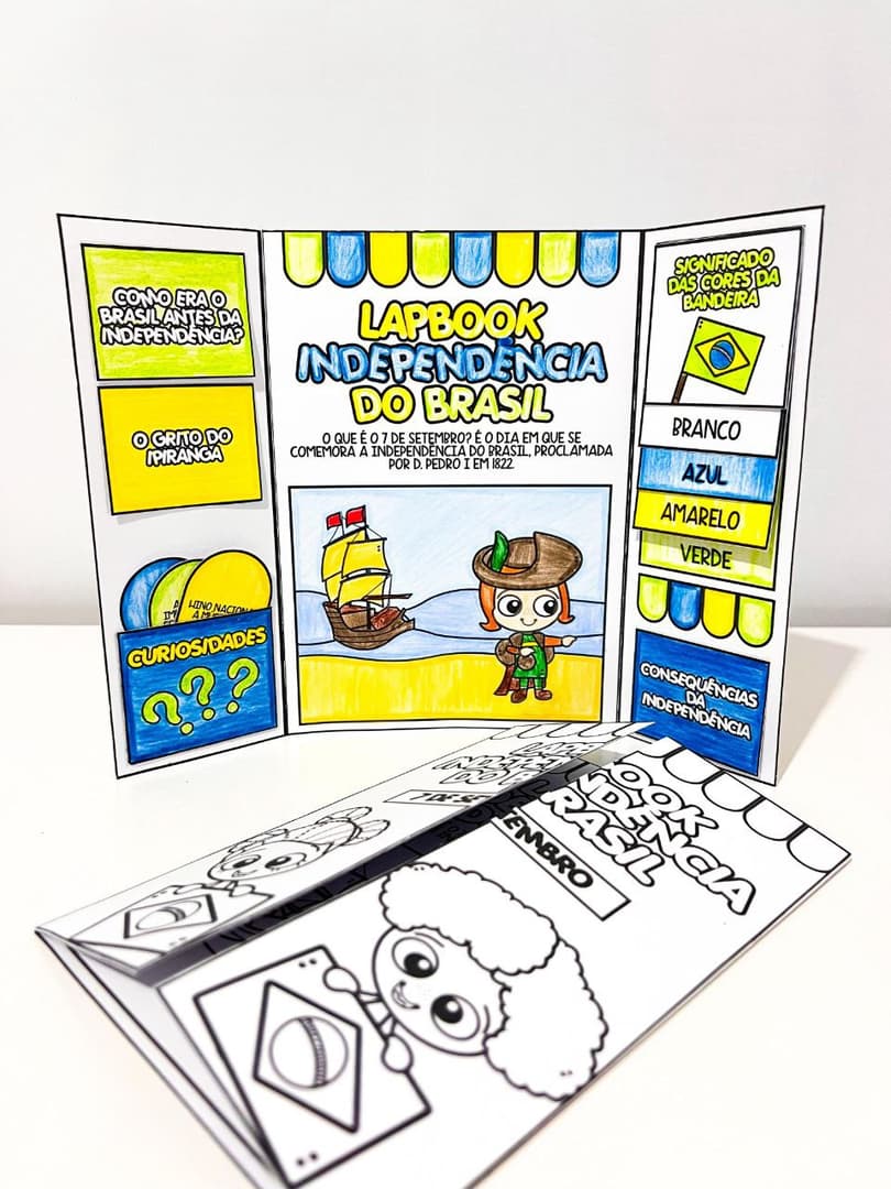 O Lapbook da Independência é um recurso pedagógico lúdico e interativo, desenvolvido para auxiliar professores e alunos no ensino da História do Brasil e na comemoração do 7 de setembro, data que marca a proclamação da independência em 1822, por Dom Pedro I. Este material é ideal para trabalhar em sala de aula de forma criativa, tornando o aprendizado mais divertido e significativo para as crianças. Conteúdo do Lapbook da Independência: Como era o Brasil antes da independência: contextualiza o período colonial, quando o país ainda era colônia de Portugal. O Grito do Ipiranga: apresenta o momento histórico do dia 7 de setembro, simbolizado pela frase “Independência ou Morte!”. Curiosidades: espaço dedicado a fatos interessantes sobre a época e o processo de independência. Significado das cores da bandeira do Brasil: explica os significados do verde, amarelo, azul e branco. Consequências da independência: mostra as principais mudanças e transformações que ocorreram após 1822.