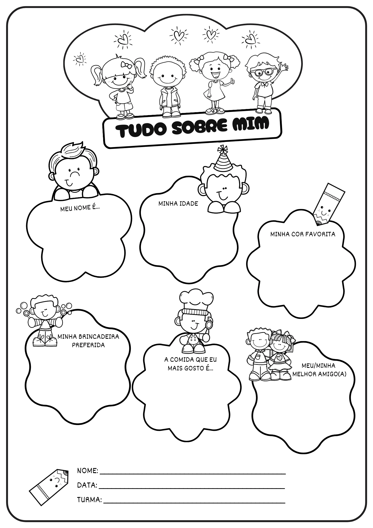 Encante seus alunos com esta atividade lúdica de identidade e autoconhecimento! Perfeita para o início do ano letivo (Volta às Aulas), este recurso ajuda a registrar a história de cada criança, sendo ideal para murais, portfólios e dinâmicas.
