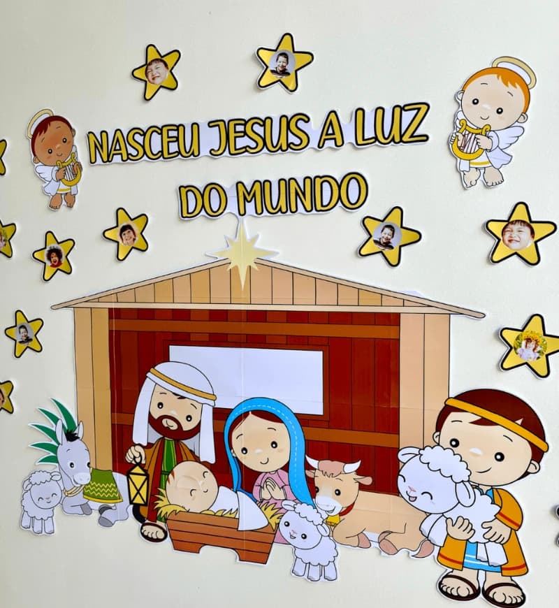 Painel de Natal com Presépio para trabalhar o tema com crianças da Educação Infantil e séries iniciais do Ensino Fundamental.