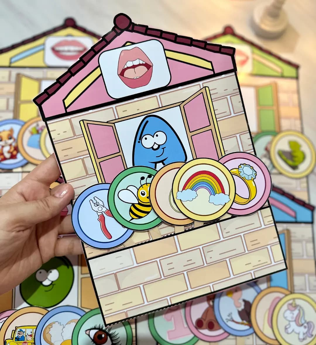 Luvas Pedagógicas Casinha das Vogais para trabalhar as vogais com crianças da Educação Infantil.