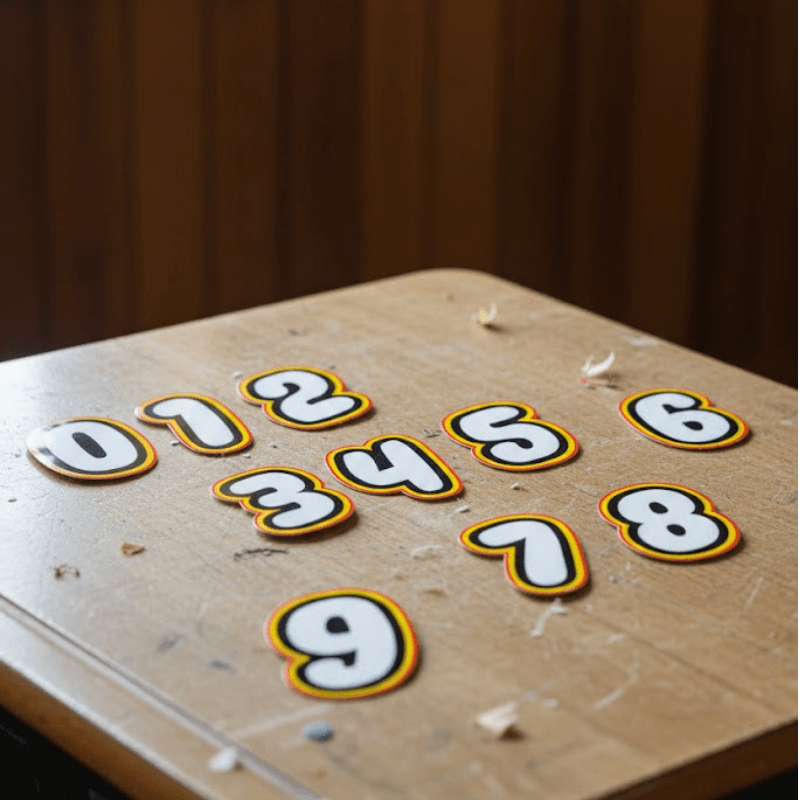 Sequência numérica de 0 a 9 em PDF, com um número por página, ideal para painéis de sala. Estilo visual inspirado nos blocos LEGO®. Inclui página extra com números reduzidos para jogos e atividades. Pronto para imprimir.