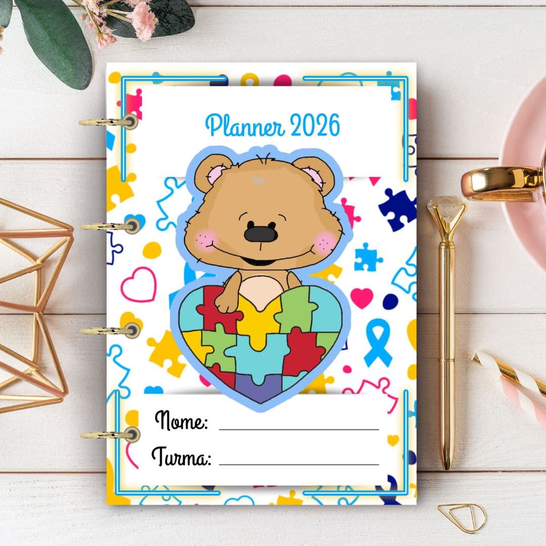 Planeje 2026 com foco na inclusão! O Planner Especial Tema Autismo é uma ferramenta de organização estruturada para facilitar o dia a dia de professores e profissionais da Educação Especial.
