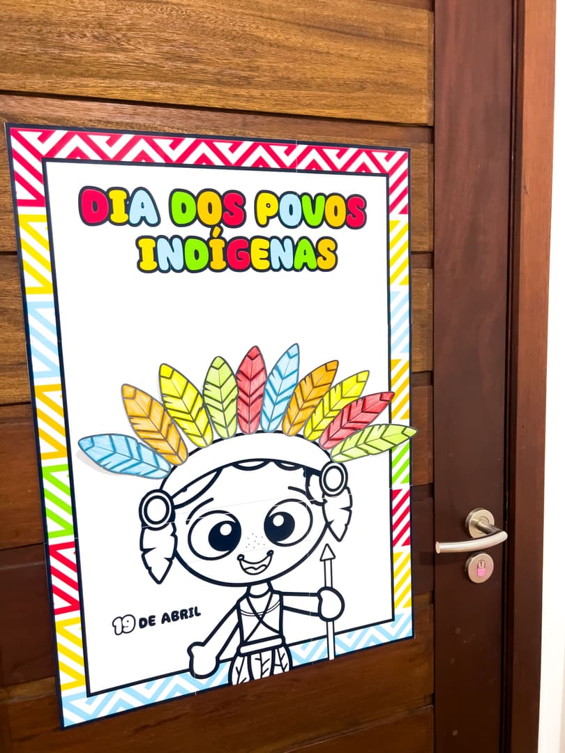 Cartaz Colaborativo Dia dos Povos Indígenas Este é um cartaz ampliado em 9 folhas A4 para utilizar no Dia dos Povos Indígenas. Consiste em as crianças formarem o cocar do indígena. Cada criança colore uma pena, promovendo criatividade e trabalho em equipe. Disponível em versões colorida e para colorir, é uma atividade lúdica para valorizar a cultura indígena.