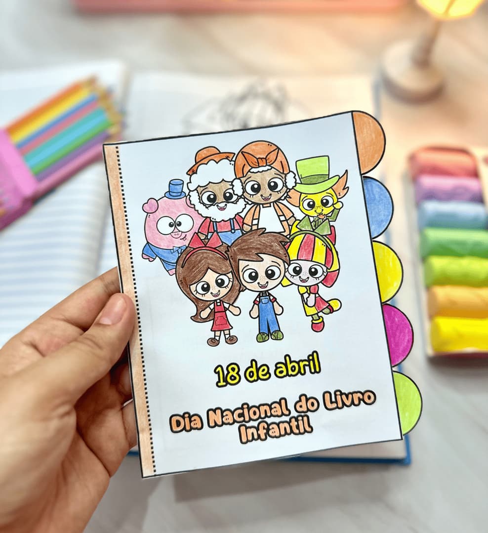 Atividade interativa em formato de livro para trabalhar o Dia Nacional do Livro Infantil com crianças de educação infantil e das séries iniciais do ensino fundamental. O arquivo vai em PDF pronto para impressão, as imagens são para colorir. No total o livrinho tem 5 páginas e com esse material você pode explicar para as crianças porquê comemoramos o Dia Nacional do Livro Infantil no dia 18 de abril, e a importância do escritor Monteiro Lobato para a nossa literatura infantil. Objetivos dessa proposta: Estímulo à leitura Desenvolvimento da imaginação Aprendizado significativo Pintura Estímulo à criatividade