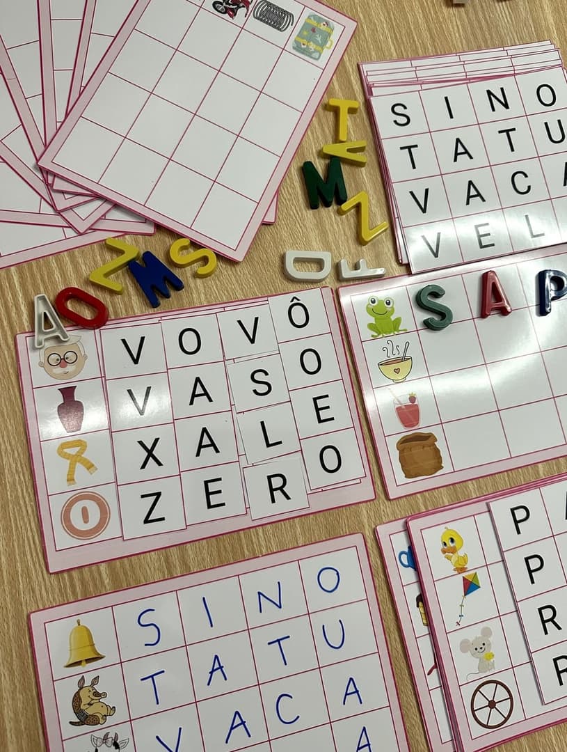 📝 Arquivo Tabuleiro das Palavras 🎲🔠 📚 Recurso versátil para auxiliar no processo de alfabetização, oferecendo diversas formas de utilização para tornar o aprendizado mais dinâmico e divertido! ✨ 📄 O que inclui o material? ✅ Arquivo em PDF pronto para impressão, ideal para uso em sala de aula ou em casa 📥 ✅ Fichas com palavras ilustradas para completar letra por letra 🖋️ ✅ Opções de uso com: Letras móveis do próprio arquivo Canetas para quadro branco (basta utilizar papel contact) Atividade no caderno, para registro permanente 📖 Letras móveis comuns, já utilizadas em sala de alfabetização 🌟 Benefícios do recurso: 🧠 Estimula o reconhecimento das letras e formação de palavras ✏️ Auxilia no desenvolvimento da escrita de forma prática e envolvente 🔤 Indicado para crianças que ainda apresentam dificuldades na escrita de palavras simples 🎯 Proposta ideal para reforço escolar ou atividades extras em sala de aula