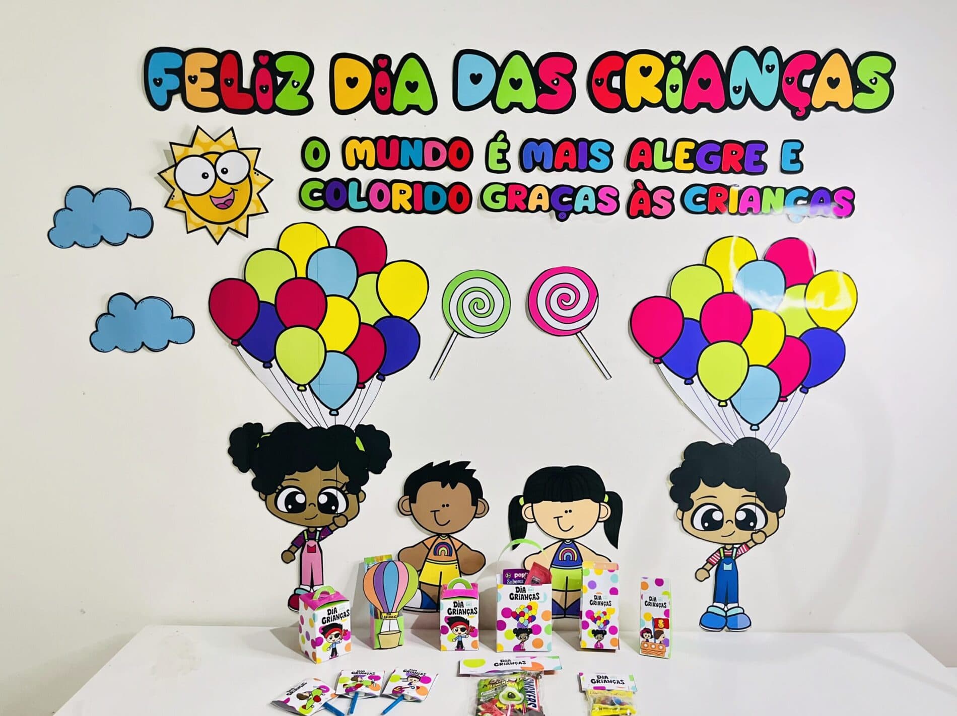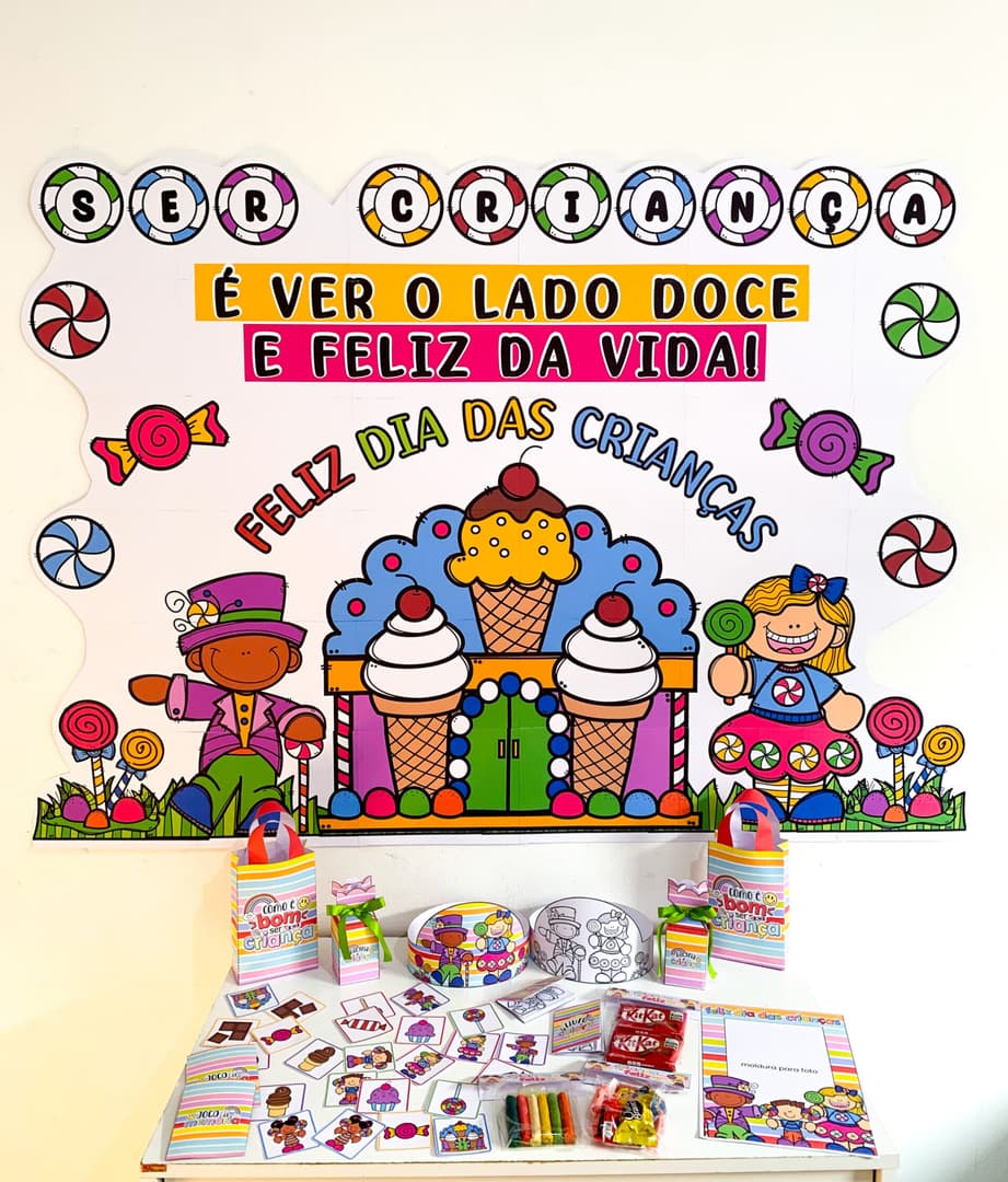 Transforme a comemoração do Dia das Crianças em um momento inesquecível com este kit de decoração para imprimir. O arquivo inclui: ✔️ Painel decorativo colorido e alegre ✔️ Tag para pirulito ✔️ Tag para lembrancinhas ✔️ Caixa Milk personalizada ✔️ Sacolinha surpresa ✔️ Caixa pirâmide ✔️ Caixinha balão Tudo pronto para imprimir e montar, ideal para professores, escolas, creches, eventos infantis e festas temáticas. ✨ Perfeito para deixar a sala de aula, festas ou confraternizações muito mais divertidas e encantadoras!