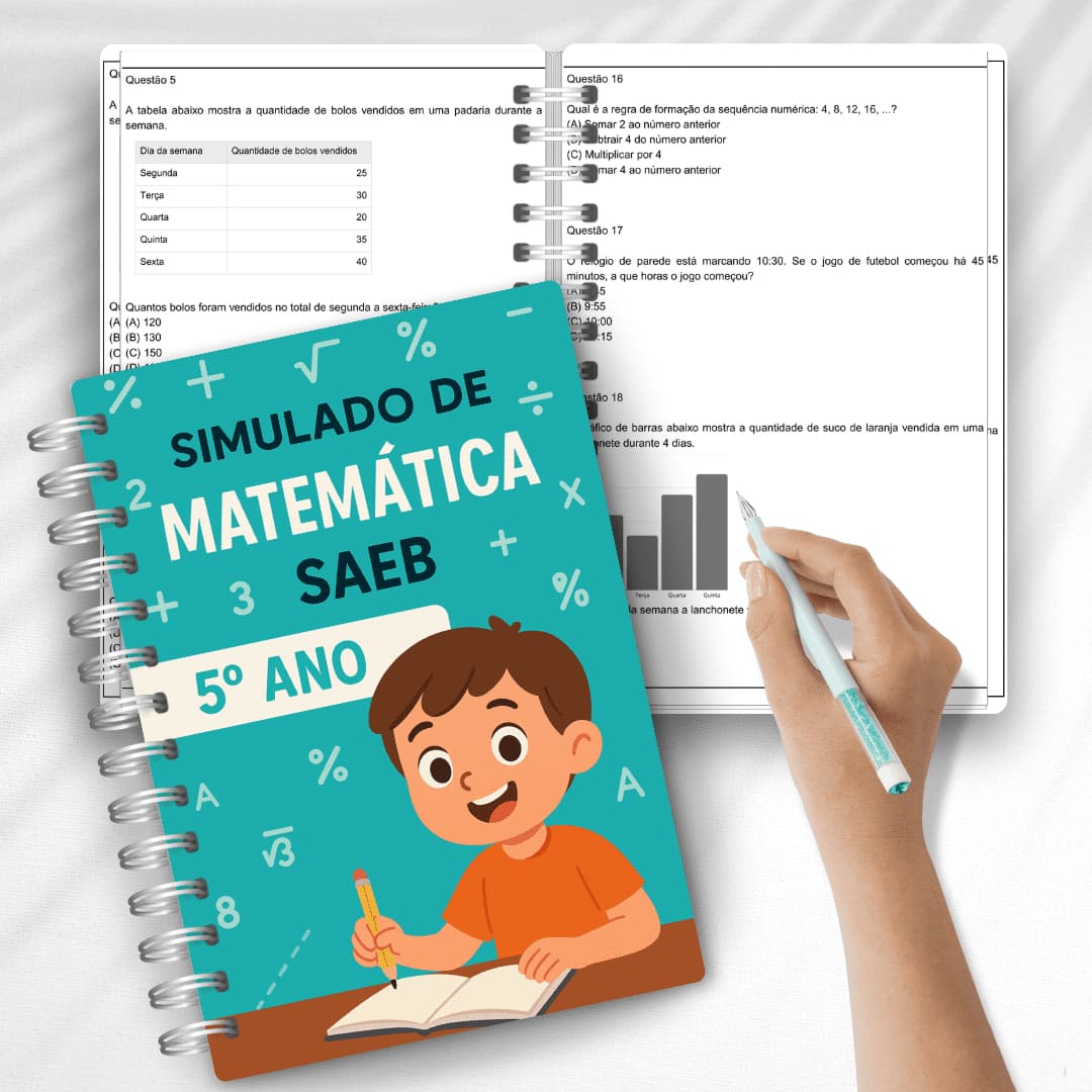 Garanta uma preparação completa para seus alunos com este Simulado SAEB de Matemática! 📝✨ O arquivo em PDF traz 20 questões objetivas cuidadosamente elaboradas para revisar conteúdos essenciais como operações matemáticas, problemas, interpretação de gráficos e tabelas, geometria e medidas. ✅ Inclui Gabarito para facilitar a correção ✅ Questões contextualizadas e alinhadas ao nível do 5º ano ✅ Material pronto para imprimir e aplicar Perfeito para professores que desejam preparar suas turmas para o SAEB, simulados diagnósticos e avaliações internas, garantindo que os alunos treinem de forma prática e eficiente. 🎯📖