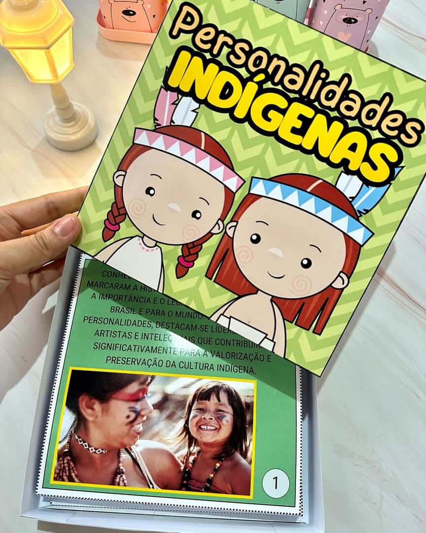 📚 História na Caixa: Personalidades Indígenas 🎯 Descrição: Recurso educativo incrível para trabalhar a cultura indígena com crianças da Educação Infantil e do Ensino Fundamental. O material inclui textos ilustrados que contam a história de personalidades indígenas importantes, destacando suas contribuições para a história e a cultura do Brasil. ✨ Diferenciais: Histórias inspiradoras que promovem o respeito e a valorização dos povos indígenas. Visual e interativo: Acompanha vídeo tutorial de montagem para facilitar o uso em sala de aula. Foco na diversidade: Mostra a riqueza e a pluralidade dos povos indígenas brasileiros. 🖨️ Formato: Arquivo em PDF pronto para impressão. 🎯 Objetivos da Proposta: Promover a valorização e o respeito pela cultura indígena. Permitir que as crianças conheçam a história e as contribuições de personalidades indígenas para o Brasil. Desenvolver a consciência cultural e histórica. Estimular o aprendizado de forma lúdica e significativa. 🌟 Incentive o conhecimento e o respeito pela diversidade cultural com este recurso indispensável!