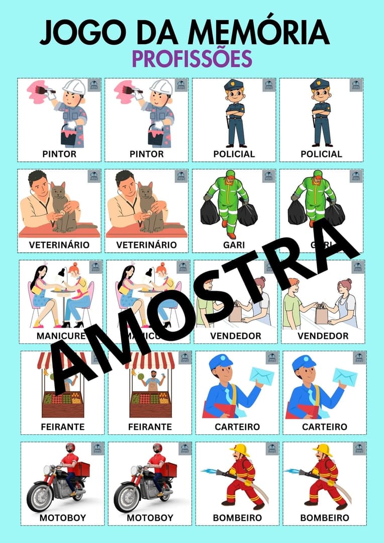 🧠✨ Jogo da Memória das Profissões ✨🧠 Jogo da Memória das Profissões por apenas R$ 3,00! Diversão e aprendizado para crianças. Pronto para imprimir! Garanta já o seu e traga mais diversão para o aprendizado! 🎉