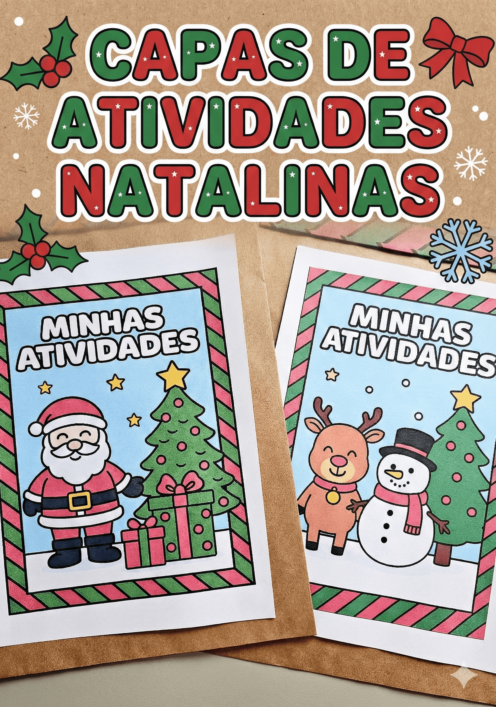 Deixe suas atividades de Natal ainda mais encantadoras com este kit de 3 modelos exclusivos de capas natalinas! Perfeito para organizar atividades, portfólios, avaliações e pastinhas temáticas da Educação Infantil e Anos Iniciais.