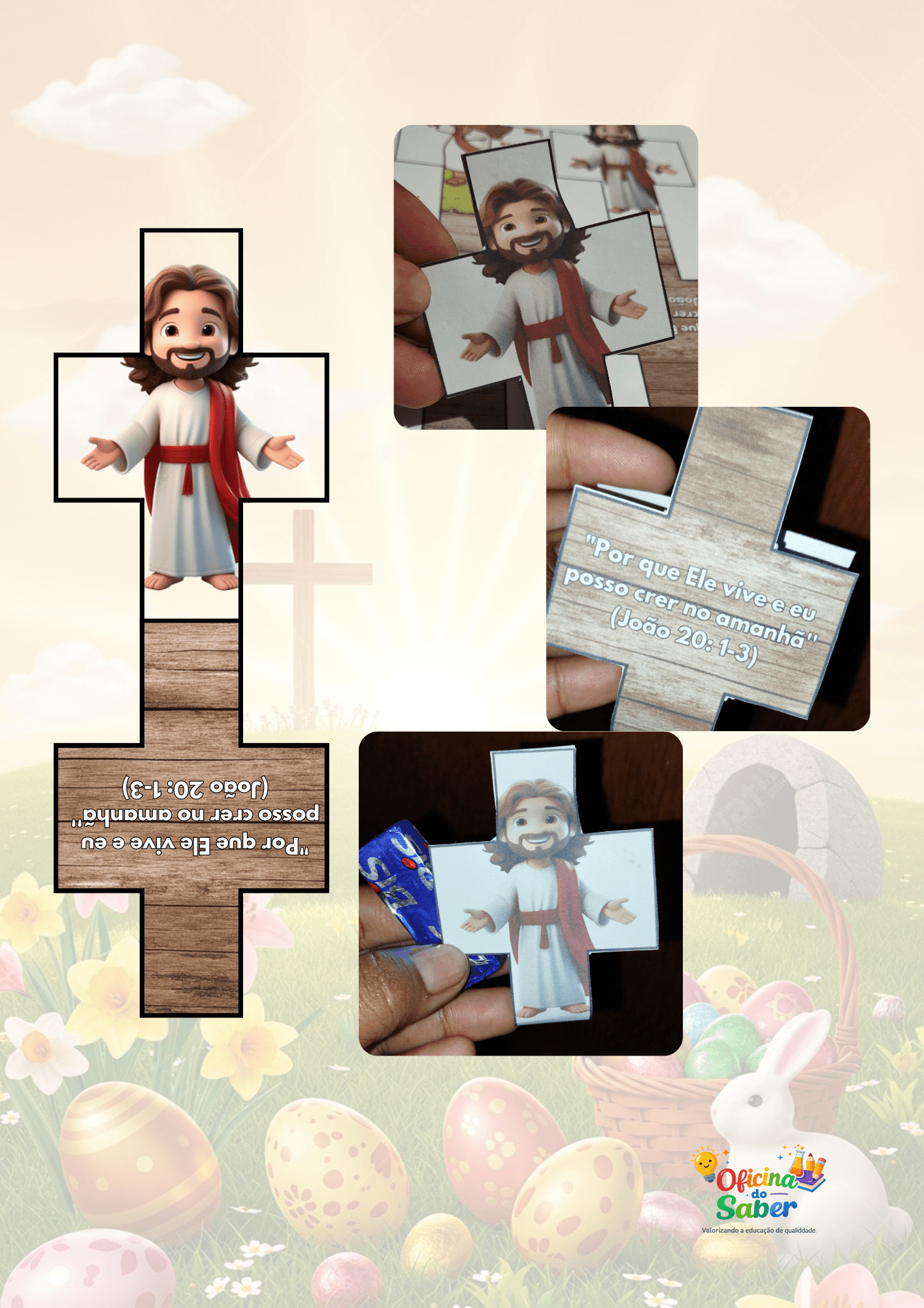 🌿 Lembrança de Páscoa Cristã – Ele Vive! Card Porta Bis com Mensagem Bíblica (João 20:1-3) - 📄 Arquivo em PDF ✂️ Fácil de recortar e montar Pronto para imprimir