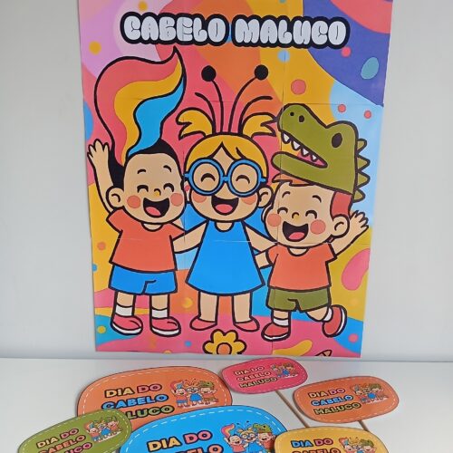 Kit Dia das Crianças – Painel + Plaquinhas do Dia do Cabelo Maluco