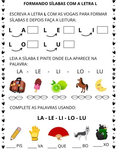 Atividades que desenvolvem a consciência fonêmica com a presença das famílias silábicas.