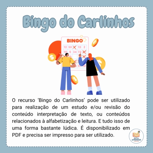 O recurso ‘Bingo do Carlinhos’ pode ser utilizado para realização de um estudo da interpretação de texto do livro ‘Procura-se!...