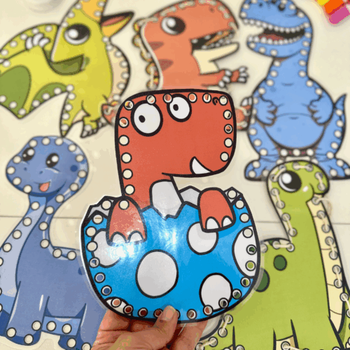 Arquivo Alinhavos Dinossauro, ideal para trabalhar a coordenação motora com crianças da Educação Especial.