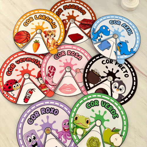 Arquivo Roleta das Cores, recurso com 10 roletas interativas para trabalhar cores com crianças da Educação Especial.